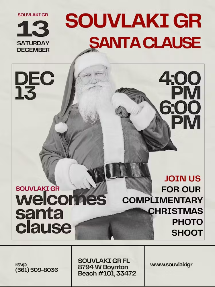 1. Saturday 13th 4:00 to 6:00  Santa Clause Complimentary Photos