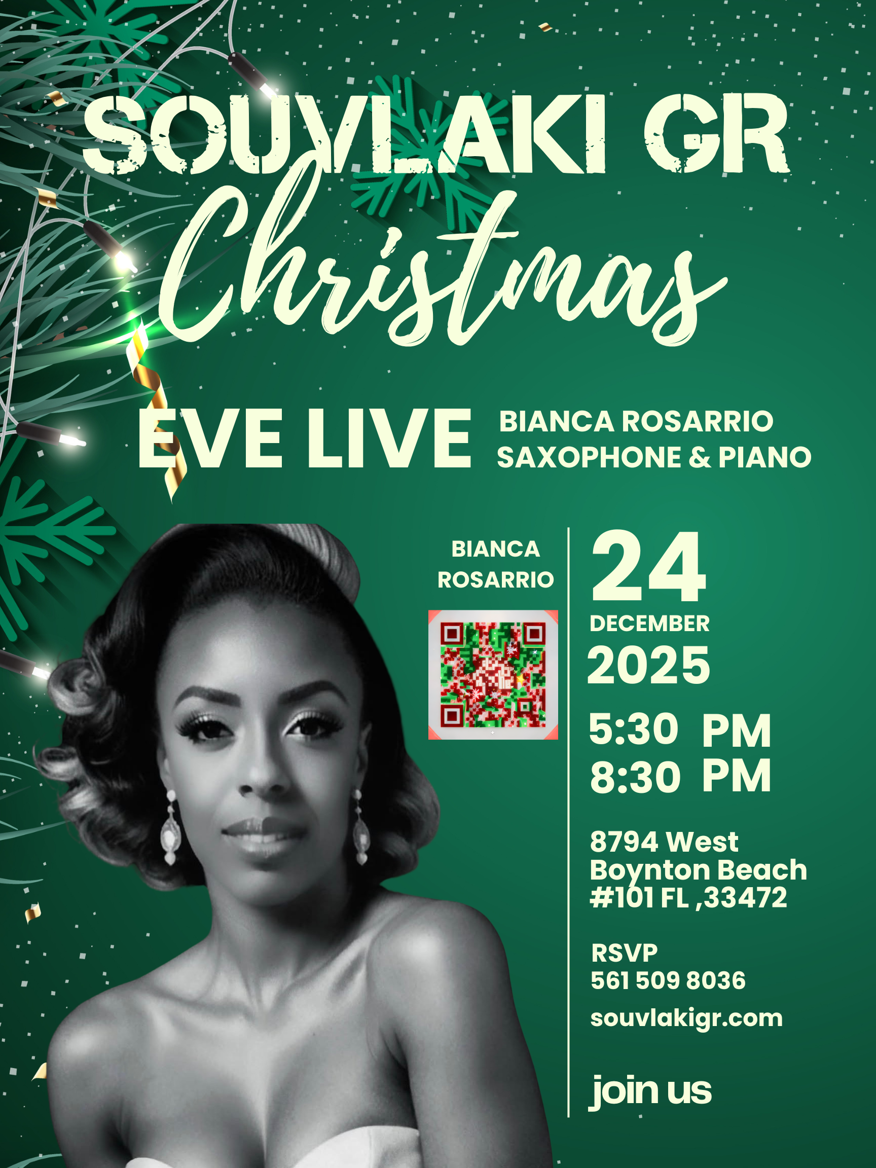 2. Christmas Eve December 24th 5:30 pm to 8:30 pm   Live Trio . Bianca Rosarrio with Saxophone & Piano