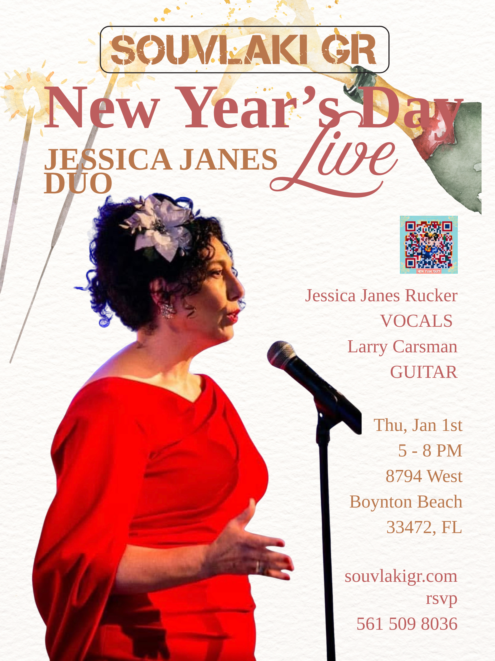 4. New Year's Day January 1st 2026 5:00 to 7:00 pm  Live Duo Jessica Jane Rucker with Guitar